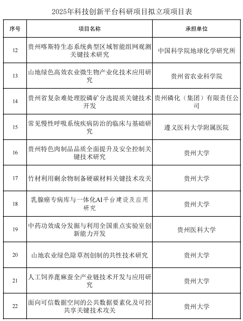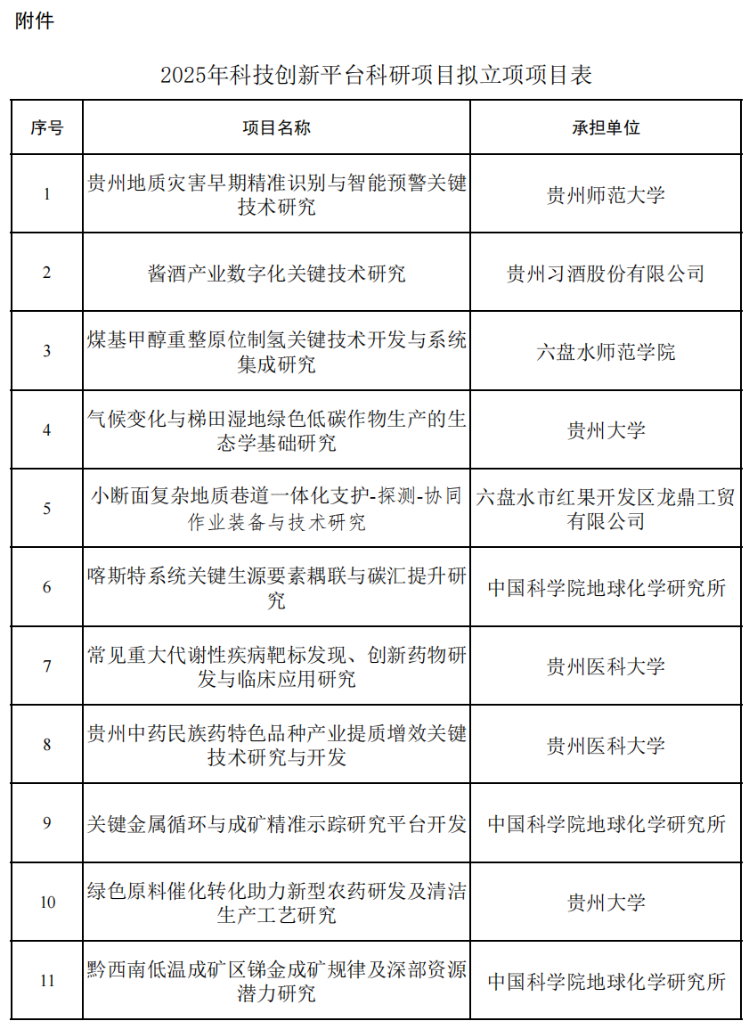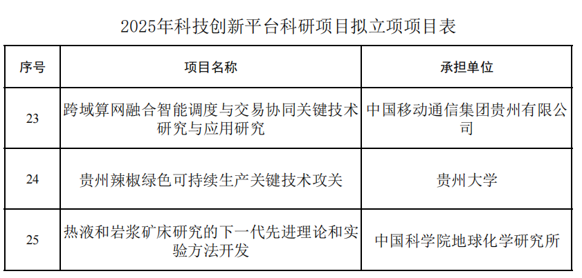 貴州省科技廳發(fā)布2025年科技創(chuàng)新平臺(tái)科研項(xiàng)目擬立項(xiàng)項(xiàng)目