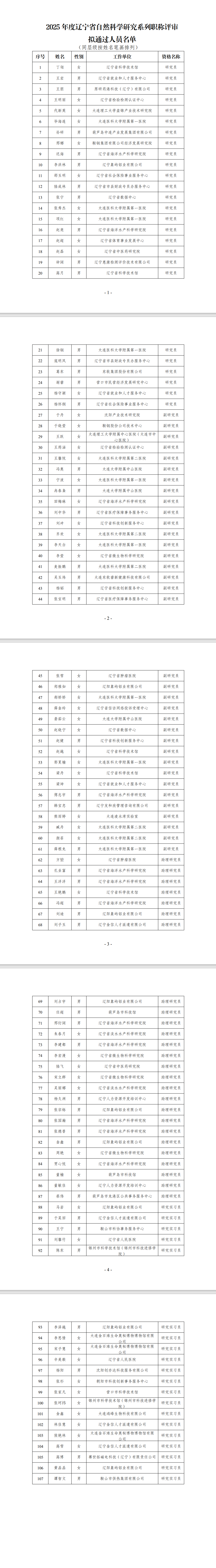 2025年度遼寧省自然科學研究系列職稱評審擬通過人員名單公示