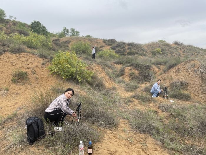 科研團隊在榆林沙蒿地采樣。受訪者供圖