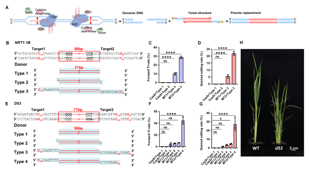 在作物育種領域,實現精準、無瘢痕的DNA片段插入與替換,是突破品種改良瓶頸和保障國家糧食安全的核心技術。該研究成功開發出一種名為“榫卯連接系統”(MT)的新型基因編輯系統,可實現靶向DNA高效插入與替換,有望為大片段基因編輯開辟新方法。