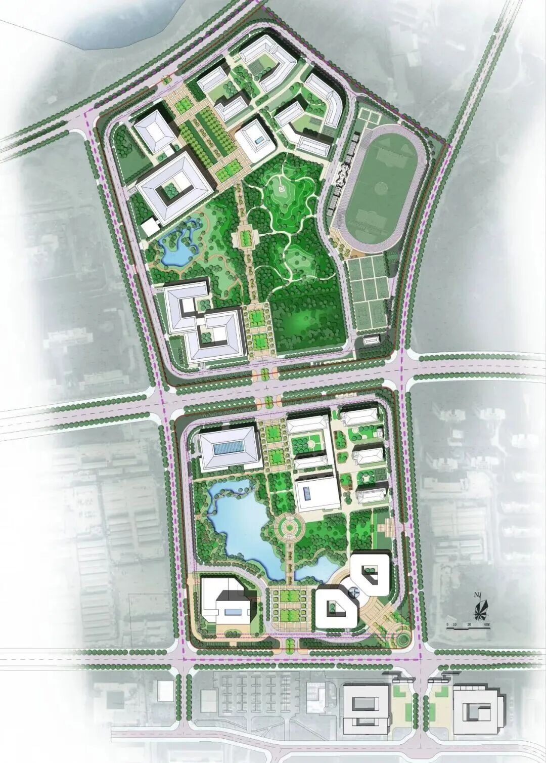 中國地質大學(武漢)新校區規劃圖。 新校區一期于2015年規劃建設,2019年9月正式啟用。功能布局包含材料與化學學院、環境學院、經濟管理學院、地理與信息工程學院、計算機學院、新能源學院(碳達峰碳中和創新發展研究院)等。新校區二期位于一期北側,用地規模458畝,學生規模7200人,總建筑面積約32萬平方米。