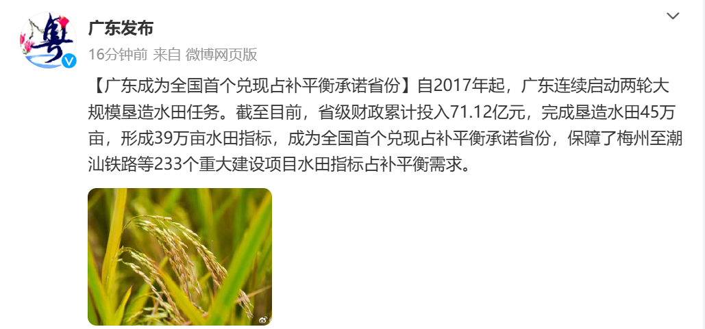 廣東成為全國首個(gè)兌現(xiàn)占補(bǔ)平衡承諾省份