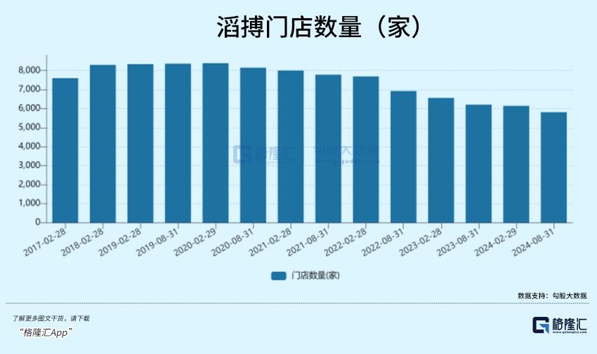 數據顯示,2020年,滔搏的門店數量達到歷史巔峰8395家,而到了2024,這一數字已經縮水至5813家。