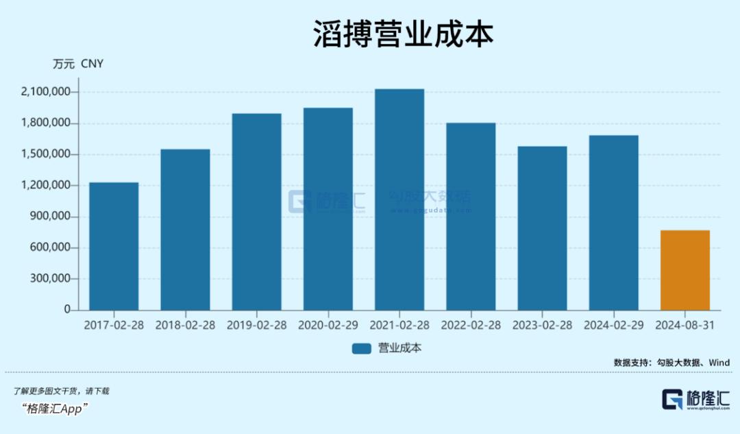2018年開始,滔搏門店呈爆發式增長,營業成本也逐年增長,隨著2021年后,滔搏逐漸關店,營業成本也隨之下降。