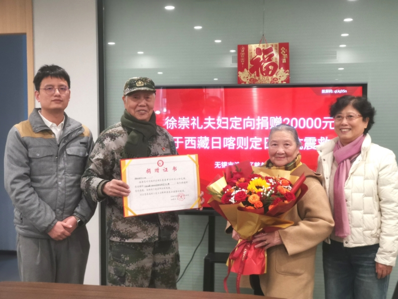 無錫退休伉儷向日喀則地震災區捐贈2萬元
