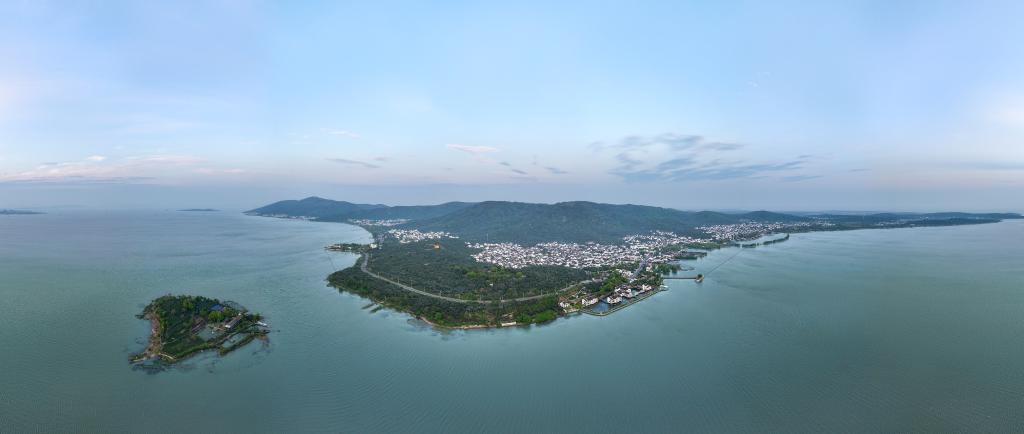 2024年4月10日拍攝的蘇州市吳中區(qū)東山鎮(zhèn)太湖景色(無(wú)人機(jī)照片)。新華社記者 季春鵬 攝