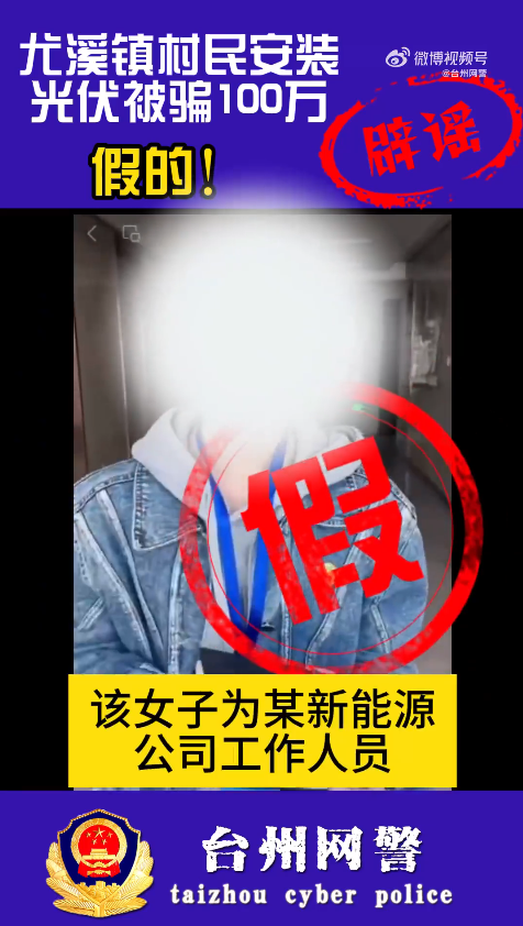 浙江臺(tái)州一地村民安裝光伏被騙100萬(wàn)?假的!