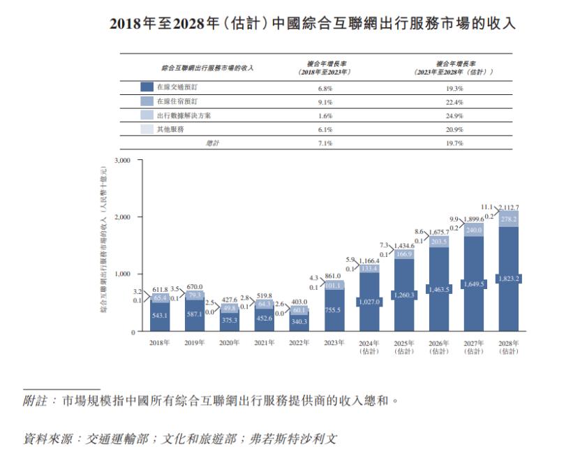 2023年我國綜合互聯網出行服務市場的收入達到8610億元,預計到2028年將達到2.11萬億元,2023年至2028年的復合年增長率為19.7%。