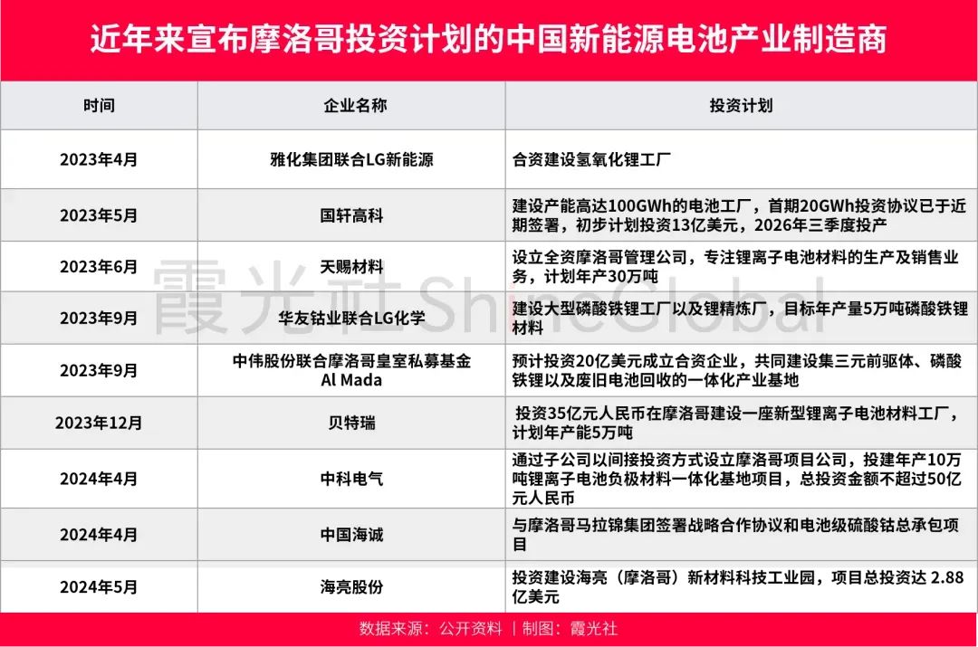 事實(shí)上,從2023年起,就有雅化集團(tuán)、天賜材料、華友鈷業(yè)等至少九家中國電池制造商在摩洛哥宣布了新的投資計(jì)劃。