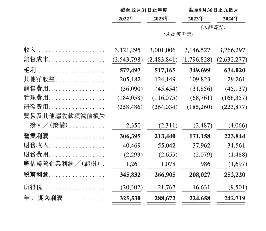 招股書顯示,2019-2023年及2024年前三季度(下稱:報告期),歌爾微的營業收入分別約為25.66億、31.60億、33.48億、31.21億、30.01億、32.66億元,歸母凈利潤/期內利潤分別約為3.09億、3.46億、3.29億、3.26億、2.89億、2.43億元。