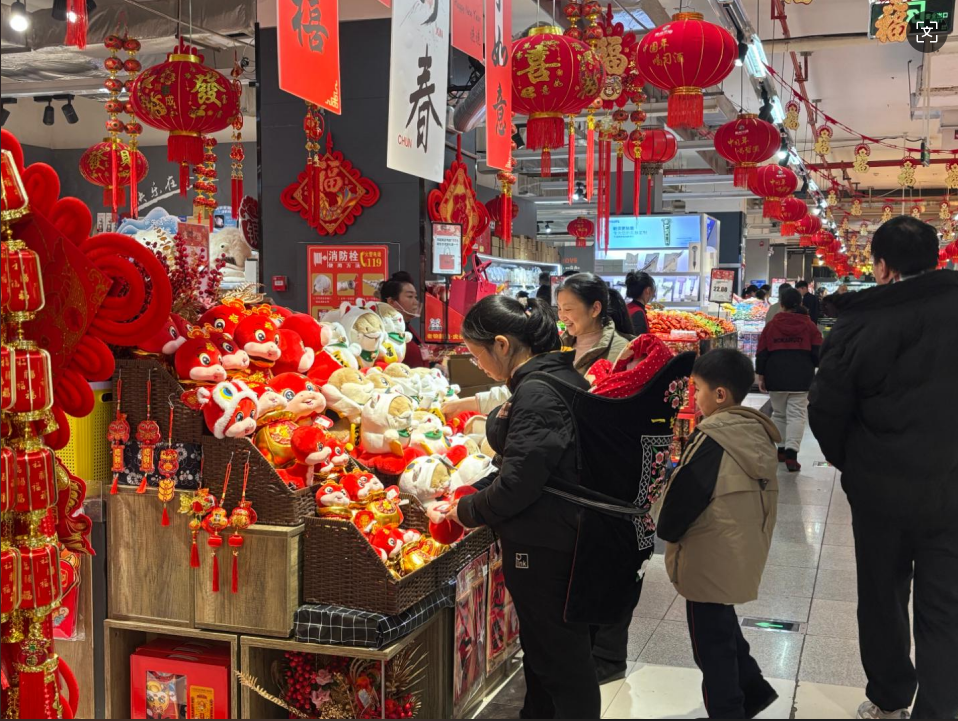 在年貨市場,各具特色的蛇年主題春聯、呆萌的“蛇寶寶”掛件、蛇形毛絨玩具、生肖蛇系列等飾品琳瑯滿目,備受青睞,成為消費市場的熱門單品。據了解,甕安縣各大超市貨源充足、價格平穩、秩序良好,全力保障廣大市民生活必需品不脫銷、不斷檔,確保群眾開開心心備年貨,歡歡喜喜過大年。