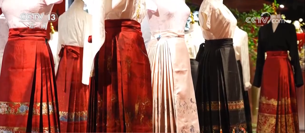 在山東菏澤曹縣的一家漢服品牌直播間,主播正熱情洋溢地向消費者介紹有蛇元素的馬面裙,其中一款一上架便迅速被搶購一空。在浙江杭州的一家新中式服裝定制店內,不少年輕顧客正在試穿、挑選。