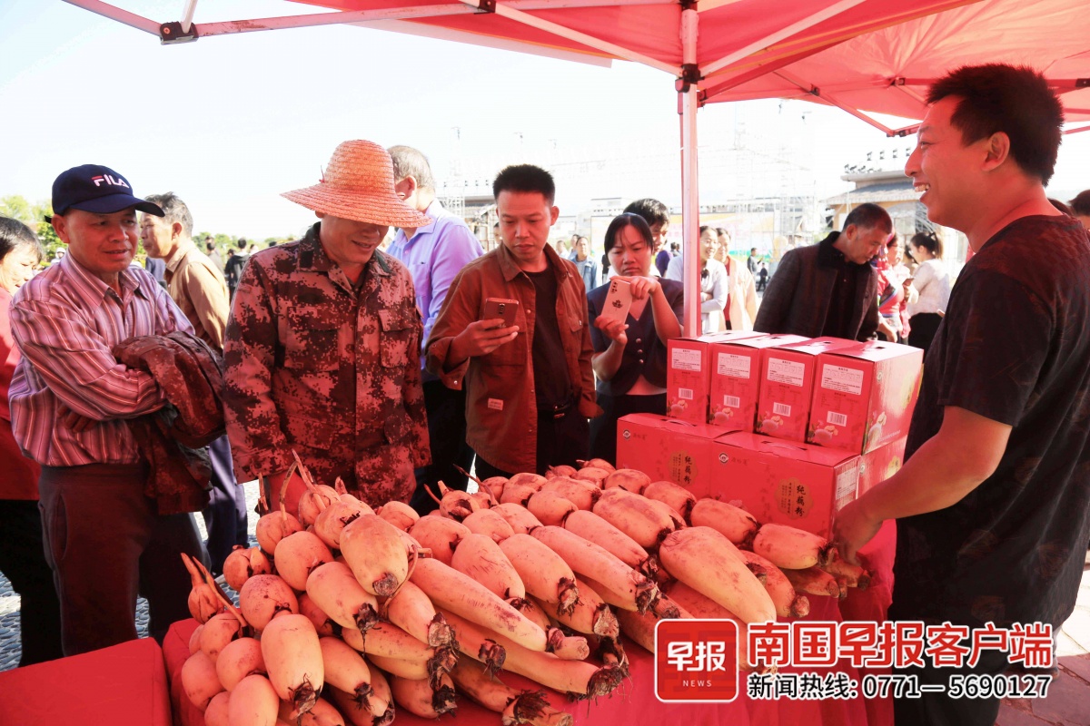活動現場,覃塘大碌藕、覃塘毛尖茶、富硒大米、大閘蟹、紅糖、桑果酒等特色農產品琳瑯滿目。現場還舉辦了藕接力賽、拔河比賽、套雞活動等趣味游園活動,吸引了眾多村民、游客駐足觀賞、品嘗。