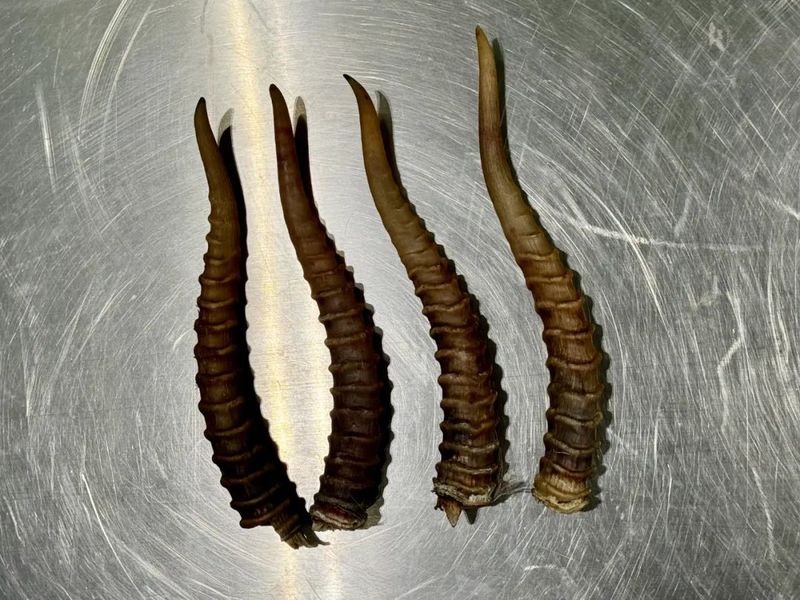 此前,大興機(jī)場(chǎng)海關(guān)現(xiàn)場(chǎng)關(guān)員在對(duì)入境旅客行李進(jìn)行監(jiān)管時(shí),發(fā)現(xiàn)一名選擇無(wú)申報(bào)通道通關(guān)的旅客托運(yùn)行李機(jī)檢圖像異常。經(jīng)開(kāi)箱查驗(yàn),在其行李物品中發(fā)現(xiàn)4根疑似羚羊角和使用膠帶包裹的大量疑似羚羊角刨絲及粉末,共凈重1.58千克。