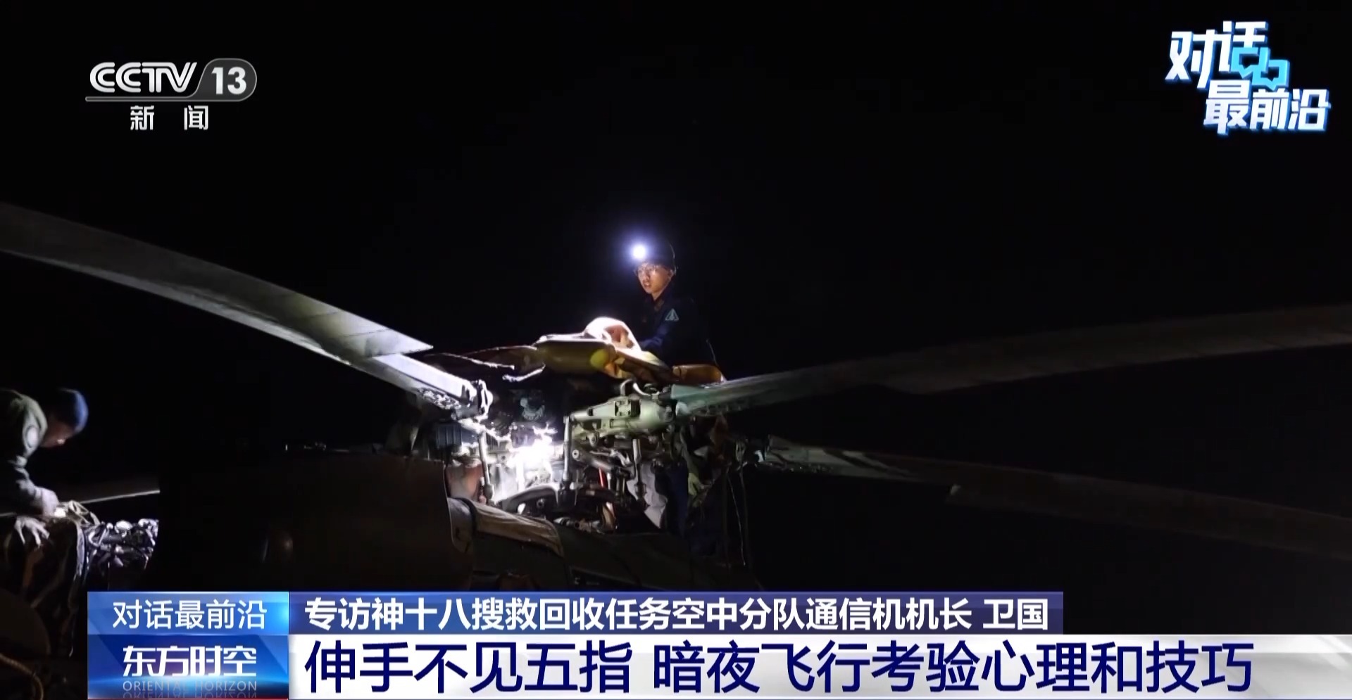 神舟十八號(hào)搜救回收空中分隊(duì)通信機(jī)機(jī)長(zhǎng) 衛(wèi)國(guó):暗夜沒(méi)有月光,沒(méi)有星星,搜索的過(guò)程中會(huì)產(chǎn)生錯(cuò)覺(jué)。因?yàn)殚L(zhǎng)時(shí)間在漆黑一片的情況下飛行,飛行員精力高度集中,會(huì)疲勞。第二個(gè)就是飛行員看不到地面,對(duì)我們目視判斷會(huì)有影響。