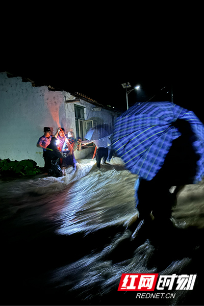 2024年6月16日下午,轄區(qū)內(nèi)暴雨驟降,積水漫漲。23時許,沙田派出所接到群眾報警求助,文昌村田龍組一位獨居老人被洪水圍困家中。副所長丁湘迎立即帶領(lǐng)警力前往救援。他們觀察水情、蹚水探路、搭捆安全繩,最終背起老人,在湍流中脫險。