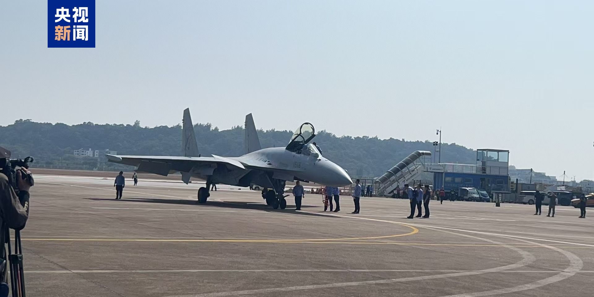 剛剛,海軍重型艦載戰斗機殲-15T落地珠海。