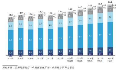疫情過后消費復蘇的推動下,預計自2024年至2028年亞洲本地零售行業的市場規模(按銷售額計算)將回彈,以1.4%的復合年增長率增長,于2028年達到33.5萬億元人民幣。