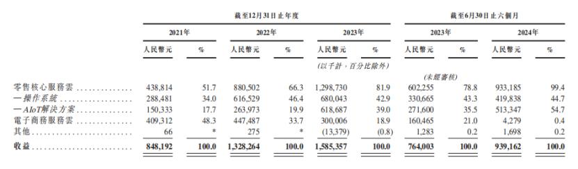 其中,零售核心服務云的收入近年來大幅增長,從2021年的4.39億元迅速增長至2023年的12.99億元,占總收入的比例也從42%大幅提升至74.3%,成為公司主要的收入來源。
