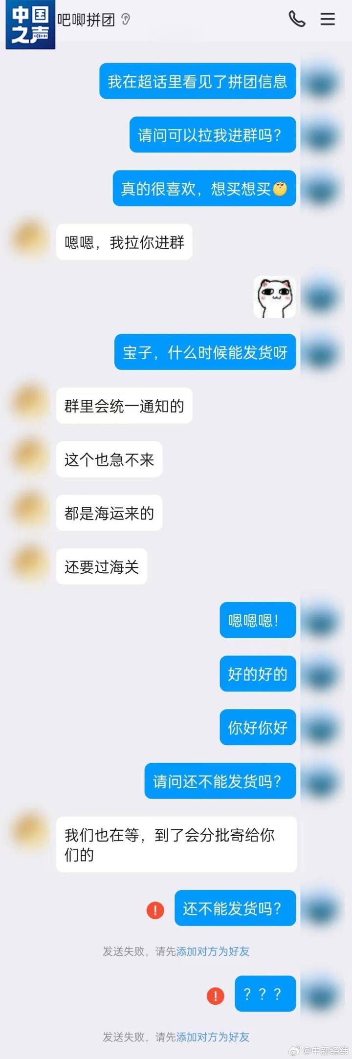 “有一次我在某社交軟件上看到一位賣家‘回血’出正版谷子,價格遠低于市場價,我就私信加了這位賣家的微信。本想通過平臺交易,但賣家堅稱自己支付寶限額,只能微信轉賬。結果轉賬后追問賣家發貨情況時,發現他已經將我拉黑了。”
