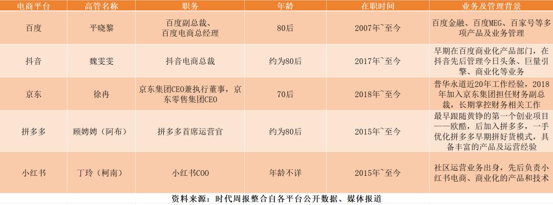 從DY電商總裁魏雯雯、百度電商總經(jīng)理平曉黎、到京東CEO(首席執(zhí)行官)許冉、拼多多COO(首席運(yùn)營官)顧娉娉,小紅書COO柯南,電商半壁江山已成為女高管天下。