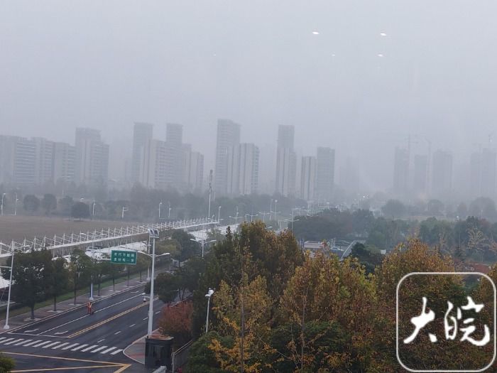 15日早晨,合肥市大霧彌漫、能見度較低。