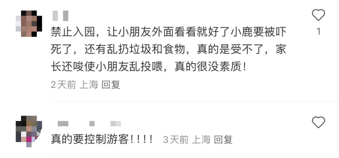 一些去過上交鹿苑的網友們也表示:“超級心疼小鹿”“一定要控制游客!”
