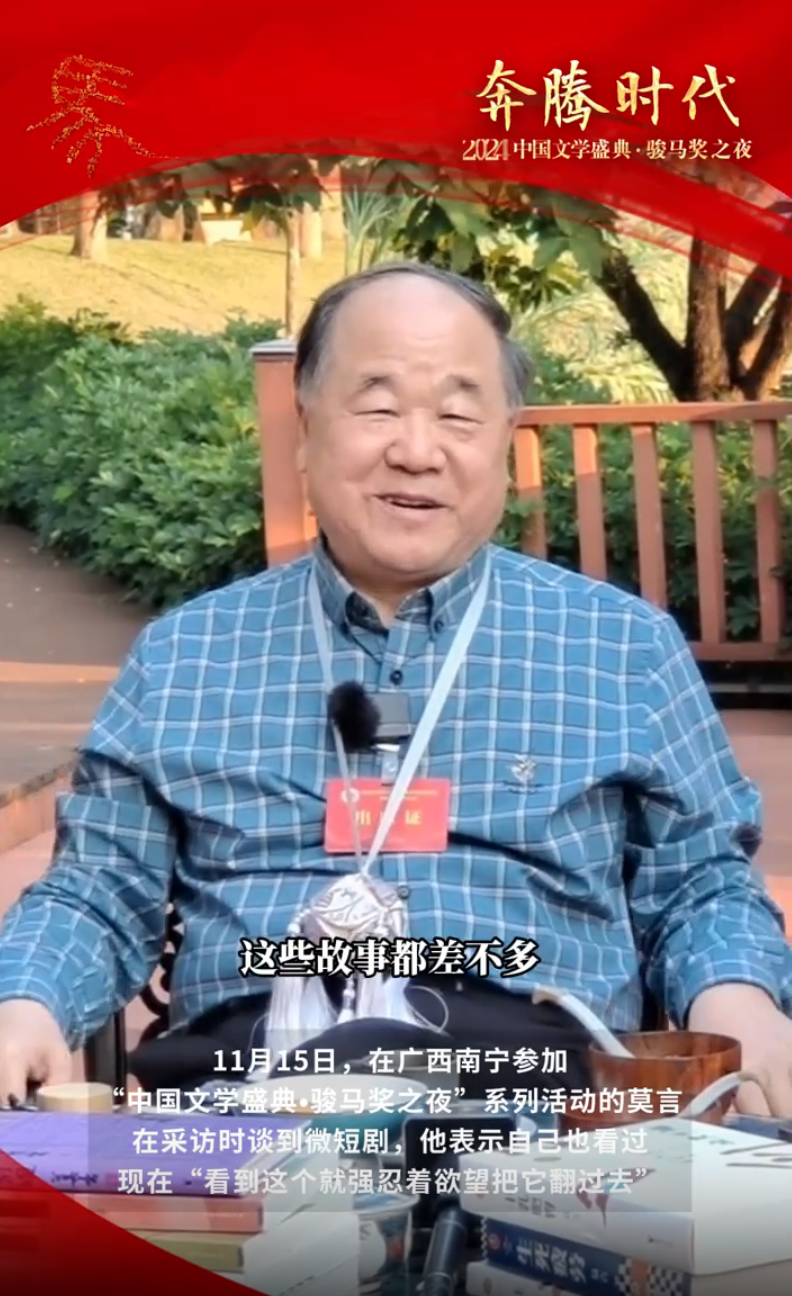 莫言談“霸總”短?。簭娙讨?,不能再看了!網友:原來莫言和我一樣“上頭”!