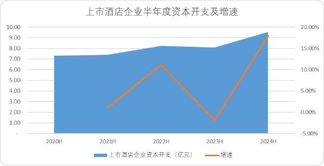 圖: 2024年上半年酒店企業(yè)資本開支及增速,來源:Choice金融客戶端