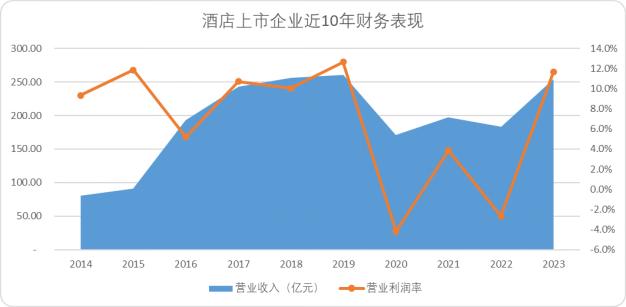 與之對應(yīng)的是,以文旅部的數(shù)據(jù)來看,2014年-2019年(疫情前)全國星級飯店OCC和RevPAR兩項關(guān)鍵指標均邁上了新臺階;以上市酒旅企業(yè)披露的數(shù)據(jù)來看,2015年后營收規(guī)模和利潤率也出現(xiàn)了明顯的增長。