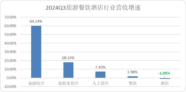 圖: 2024Q3旅游餐飲酒店行業(yè)營收增速,來源:Choice金融客戶端