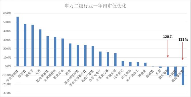 圖:申萬二級行業(yè)一年內(nèi)市值變化,來源: Choice金融客戶端