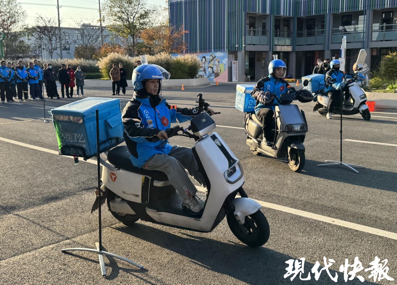 活動中,江蘇治端律師事務所的吳成桂律師為藍騎士們宣傳普及了工會知識、維權案例、安全知識等內容。競賽現場,設置了投壺、木射、捶丸等趣味活動,還設置了S彎繞行、繞桿騎行等競技項目,對騎手配送規范、騎行技能、安全意識、異常應對等多項綜合能力進行全方位考驗和專業評估。比賽現場精彩紛呈,藍騎士們憑借出色的駕駛技能完成了一系列高難度動作,激烈比拼展現過硬技能,最終評選出一等獎1名、二等獎2名、三等獎3名、四等獎4名,五等獎5名。