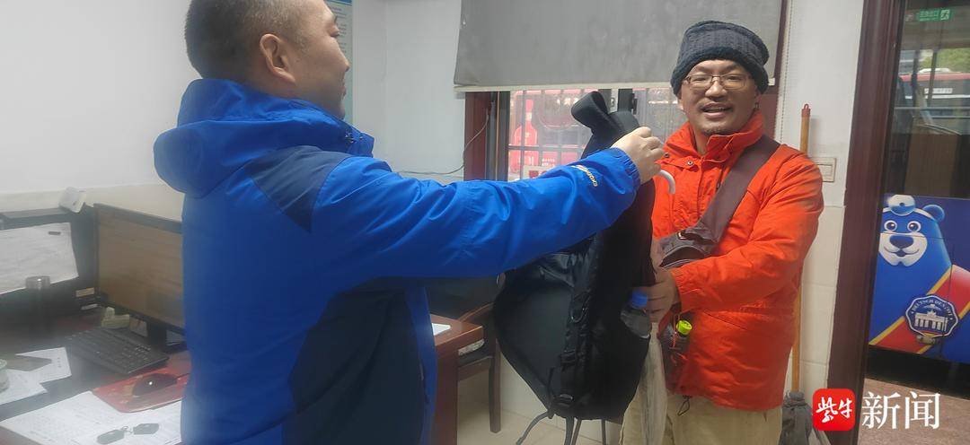 胡先生和家人從臺灣來南京旅行,當天計劃去牛首山佛頂宮參觀。上午9點半左右,胡先生一行人在通濟門站乘坐98路公交車,當車輛到鳳信路西站準備換乘時,由于下車匆忙,不小心將背包遺落在公交車上。發現背包不見后,胡先生焦急萬分,背包里面有市民卡、護照、臺灣居民來往大陸通行證、銀行卡等重要物品。隨后,胡先生抱著試試看的心理,跟著后面一輛98路公交車來到底站景明佳園尋求車隊幫助。