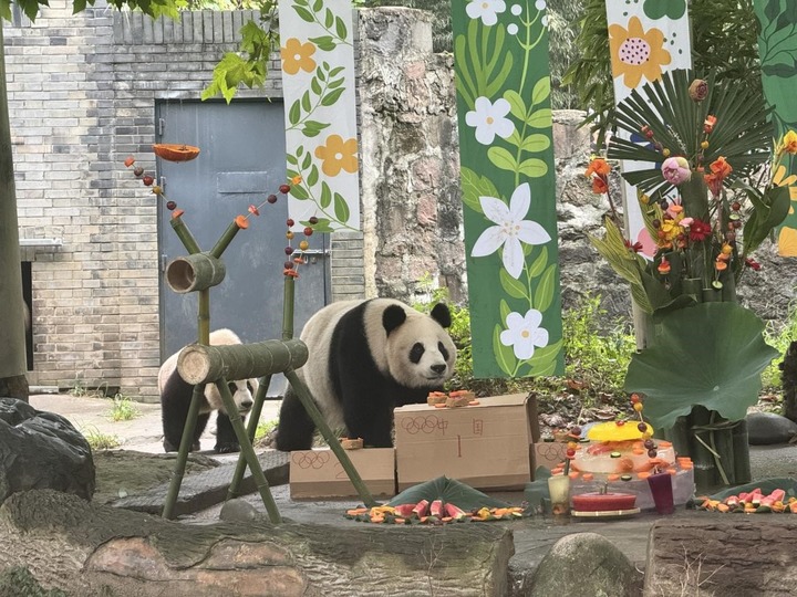 2024年9月,中國(guó)大熊貓保護(hù)研究中心雅安碧峰峽基地為熊貓們精心準(zhǔn)備了“禮物”。新華社記者薛晨 攝