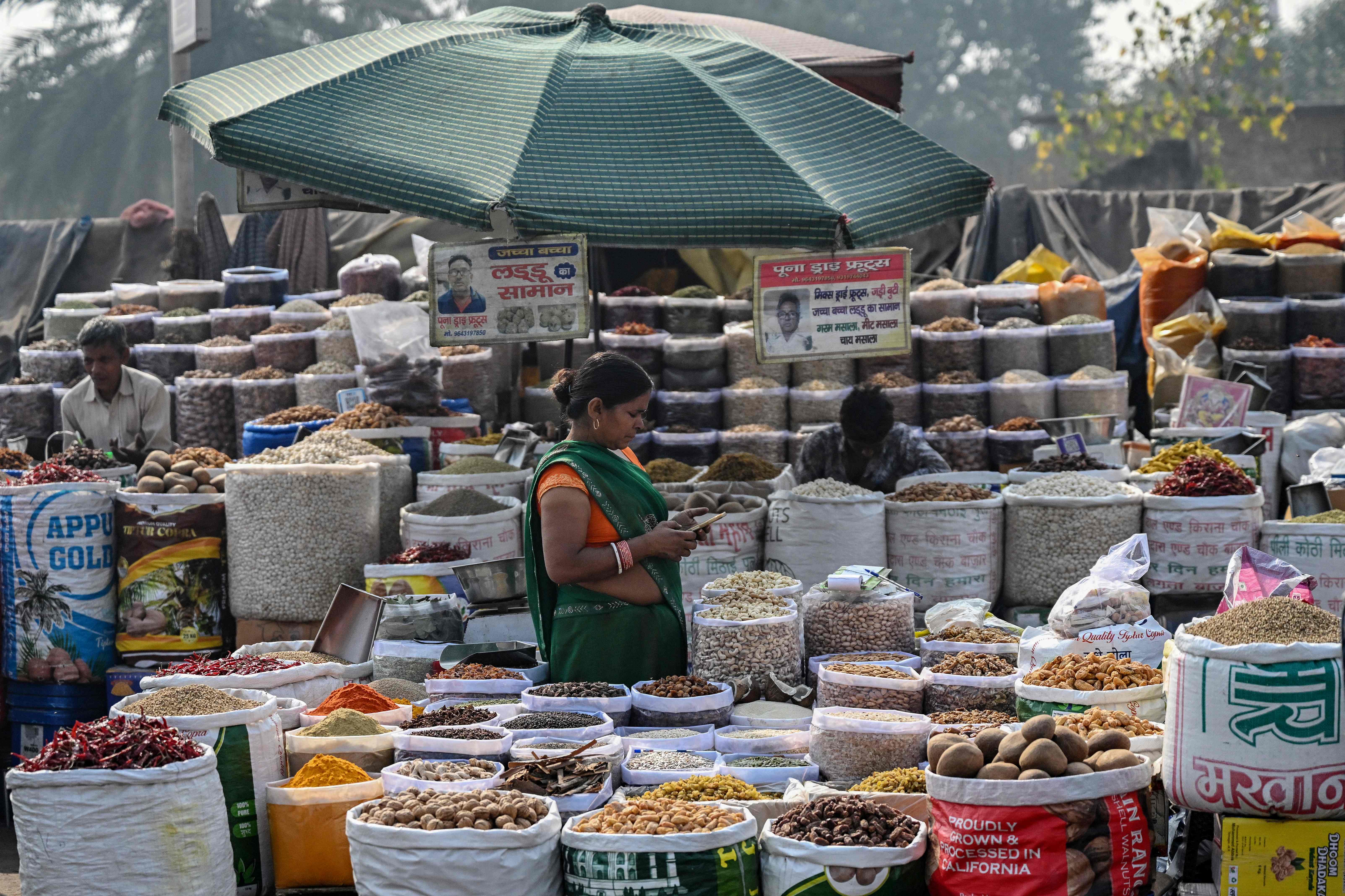 11月29日,印度新德里的商販正在售賣農產品。(法新社)