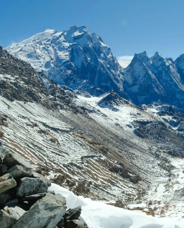 雪山上的雪特別厚,基本上每個埡口的雪都沒到腰,最淺的也超過膝蓋。