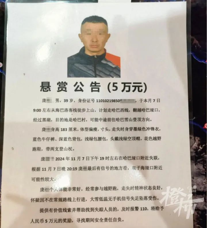 11月7日,一名男子龐某進入哈巴雪山后失蹤。連日來,龐某的父親懸賞5萬元尋找兒子的蹤跡,至今杳無音訊。