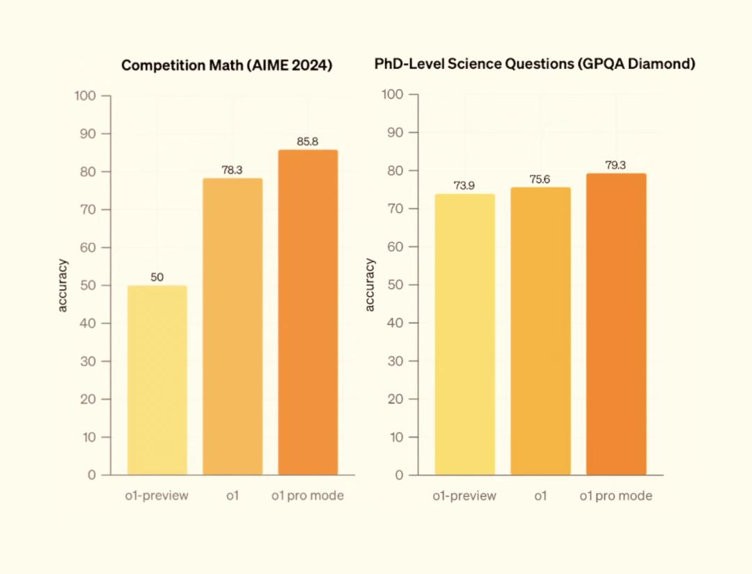 Pro 版本中,還提供了一個(gè) o1 模型的 Pro 版本。使用 o1 模型的 pro 版本,將使模型結(jié)果的可靠性有小幅提升。對(duì)于大多數(shù)用戶而言,這樣的小幅提升可能作用不大,但是對(duì)于愿意花 200 美金一個(gè)月使用 GPT 的用戶而言,這樣的小幅提升或許也是可貴的。