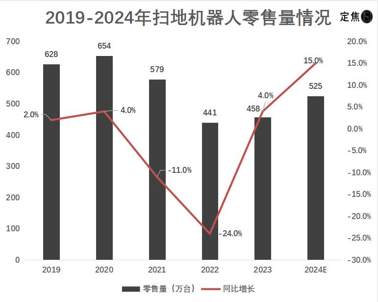 但后來掃地機器人市場紅利褪去、洗地機的出現,以及外部消費環境的變化,導致行業銷量下滑,去年才慢慢回溫。
