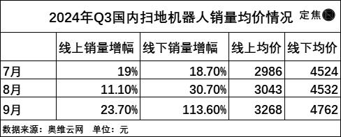 再具體到Q3,奧維云網數據顯示,掃地機器人7月、8月、9月的單月銷量不僅出現了同比增長,購買均價也連續三個月上漲,9月的線下均價達4762元。