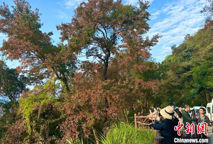 中新網廣州12月6日電(記者程景偉)2024年廣州市石門國家森林公園紅葉觀賞節6日開幕。該公園素有“廣州香山”之稱,眼下這里的楓葉逐漸變紅,不少游客慕名而來。