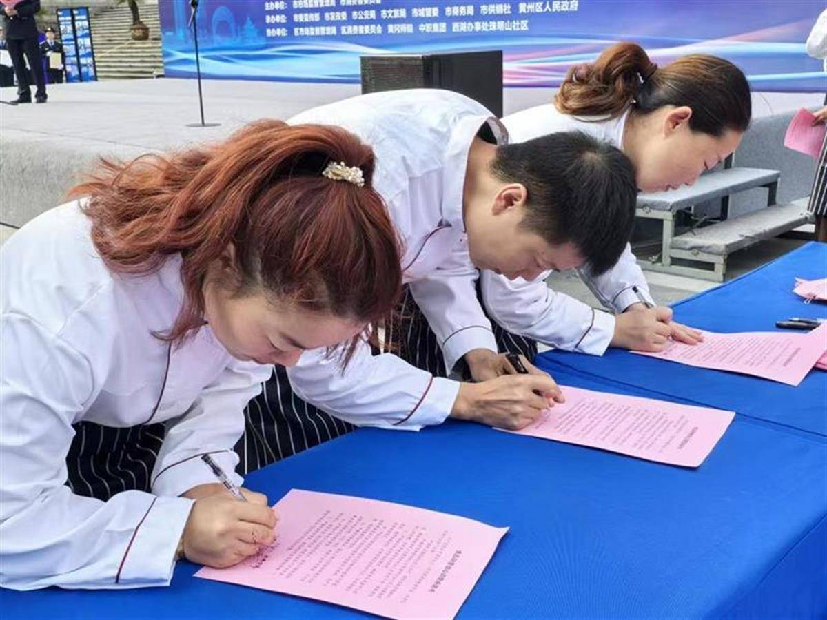 活動現場,黃岡市消費者委員會、黃岡市市場監管局向廣大消費者、經營者、行業協會和政府職能部門發布了放心消費倡議,公布了參與學生街放心消費承諾活動的經營主體名單。經營者代表作出放心消費公開承諾,并被授牌學生街首批“放心消費承諾單位”。