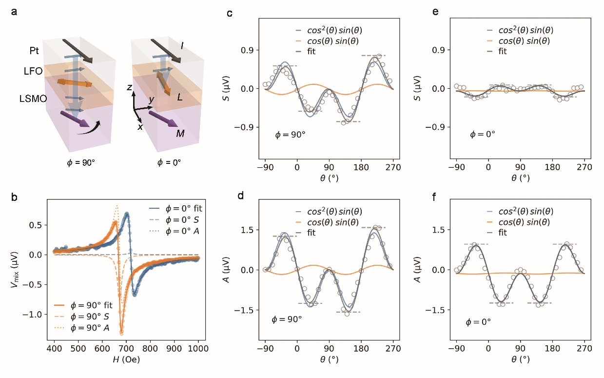 研究團(tuán)隊(duì)進(jìn)一步結(jié)合自旋塞貝克效應(yīng)與自旋力矩鐵磁共振測(cè)試,明確地驗(yàn)證了該偏振片可以調(diào)制透過(guò)磁振子流的自旋極化方向,突破了此前多疇材料中平均效應(yīng)的限制。基于此,團(tuán)隊(duì)進(jìn)一步驗(yàn)證了該磁振子偏振片可以誘導(dǎo)產(chǎn)生非常規(guī)自旋力矩,獲得了通常難以實(shí)現(xiàn)的垂直面外分量,為實(shí)現(xiàn)低功耗、無(wú)場(chǎng)輔助的垂直磁矩翻轉(zhuǎn)器件提供了新方案(圖3)。總的來(lái)說(shuō),磁振子流偏振片不僅為自旋電子學(xué)領(lǐng)域提供了關(guān)鍵的功能模塊,更為反鐵磁絕緣體在未來(lái)信息器件中的應(yīng)用打開(kāi)了新思路。