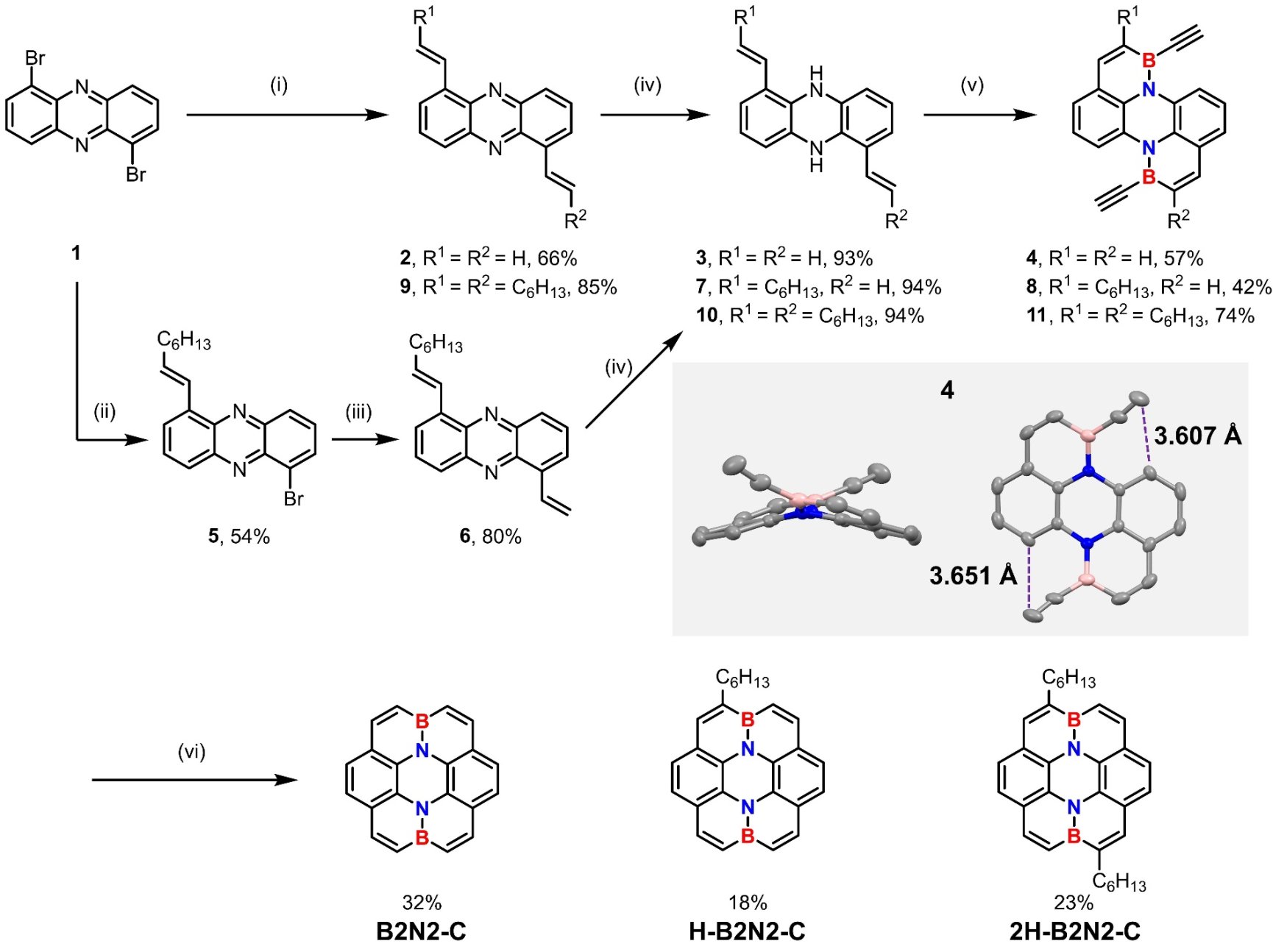 圖1. 內部硼氮雜蔻的合成路線