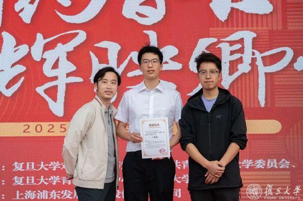榮獲復(fù)旦大學(xué)“卓越杯”一等獎(jiǎng)后,張一弛(中)和成員合影留念