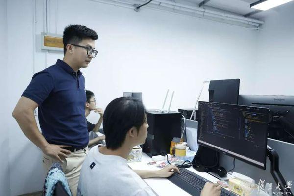 朱靜逸(左邊)與團(tuán)隊(duì)成員調(diào)試代碼