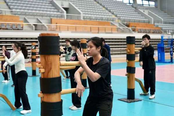 孔繁輝出身北派武術,系統掌握近十種傳統拳械,卻特意引入詠春這一南派代表,是“希望讓學生了解傳統武術的多元面貌和文化內涵。”課程設計遵循“理法并重,身心兼修”的理念,從二字箝羊馬、攤手、膀手等基礎架構,到“小念頭”套路與黐手應對,層層遞進地引導學生“筑基、明理、致用”。