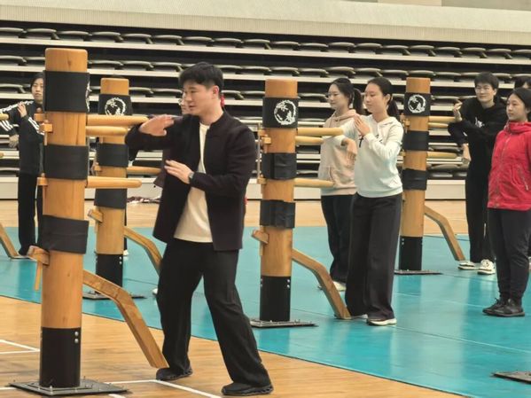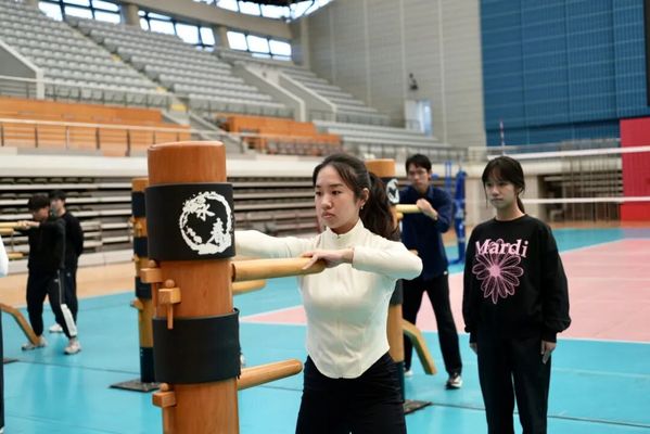 “我們不追求動作的高難度,更重規范與文化感知。”學期考核雖只有一段小套路和木人樁,教學中卻融入了武德禮儀、傳統哲學與發力原理的講解。在唐海棠看來,這種慢進度反而適合入門。“它像一扇門,推開后能看見更廣闊的天地。人體結構和發力原理是相通的,因此對空間位置的把控、對勁力的感知引導,是不同流派的必修課。”