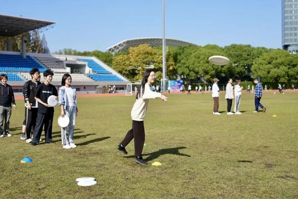與此同時,在體育場上,一群學生正手握飛盤,拋接傳遞。去年九月起學校新開設《極限飛盤》課程后,吸引了大批同學選課,嘗試這門看似“小眾”運動。